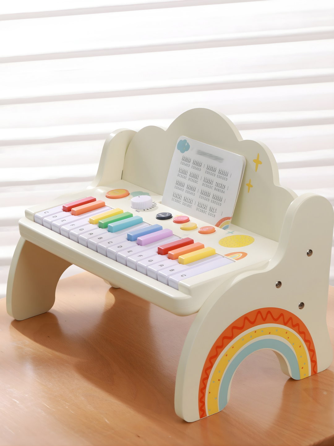 Introduce your little one to the joy of music with this elegant white rainbow piano.