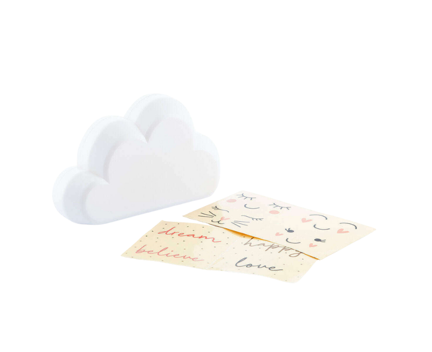 The InnovaGoods Lamp with Rainbow Projector and Stickers is a cloud-shaped LED nightlight that projects a colourful rainbow on the wall, helping children relax and fall asleep. Lightweight, battery-operated, and safe to touch, it includes 8 reusable stickers for creative decoration and is easy to use with a single on/off button. Perfect for bedrooms, it combines fun, functionality, and portable design for a magical lighting experience.