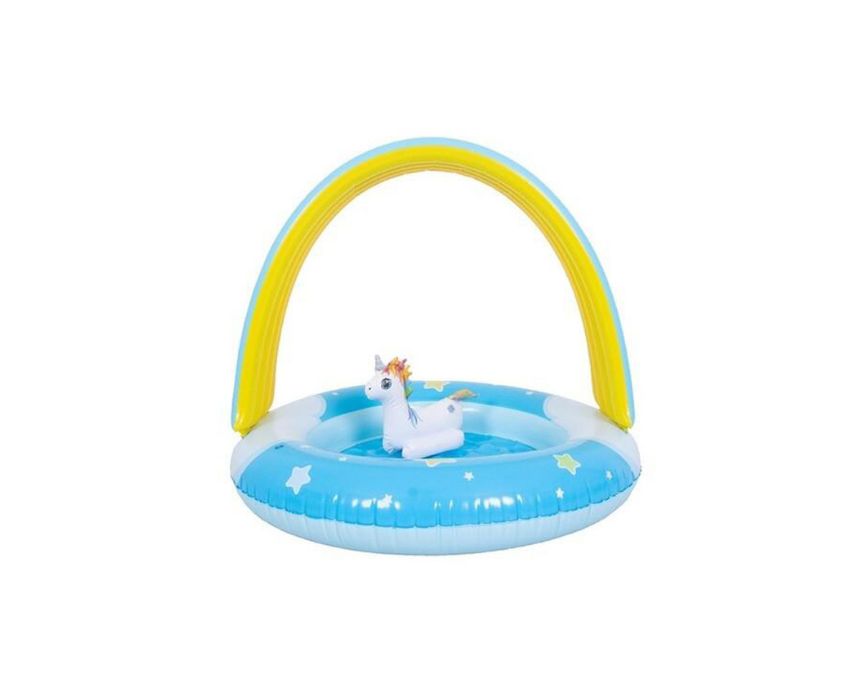The SunClub Rainbow Unicorn Canopy Pool is an ideal summer escape for toddlers aged 1 to 3. With a 40-liter water capacity and dimensions of 95 x 80 cm, it offers a comfortable and shaded space to play safely. Perfect for use at the beach, garden, balcony, or poolside, it supports children weighing 11 to 18 kg and provides protection from the sun while keeping little ones cool and entertained Designed for kids aged 4+.