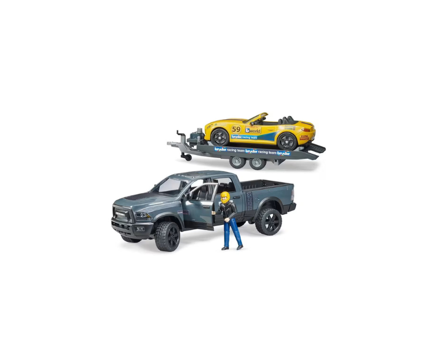 Vehicle toy set designed with a powerful pickup truck and racing car for exciting motorsport themed play. It features opening doors, smooth steering control, and detailed elements to enhance imaginative racing adventures. Perfect for playtime, it can be styled as a fun and dynamic racing activity for kids.