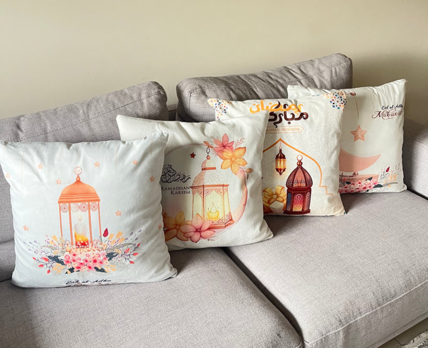 The Ramadan Cushion Cover is available in four distinct light-colored designs, offering versatile décor options for your home. Its mix-and-match style allows seamless integration with existing furnishings, enhancing the aesthetic appeal of your space. Perfect for creating a serene and festive ambiance during the Ramadan season.