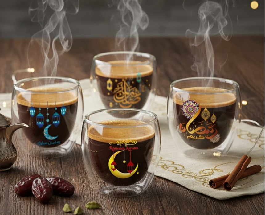 The Ramadan Double Glass Espresso Cup (80 ML) is a stylish and elegant drinkware piece perfect for enjoying your favorite espresso during the holy month. Its double-wall glass design keeps beverages hot while protecting your hands, combining functionality with a festive touch for Ramadan celebrations.