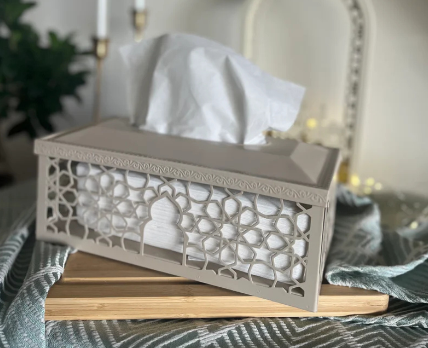 The Ramadan Metal Grey Tissue Box is crafted from durable grey metal with intricate detailing, combining elegance and practicality. Its sleek design complements any décor while ensuring long-lasting use, making it perfect for home or festive settings. Style it on tables, shelves, or countertops to add a subtle Ramadan touch to your space.