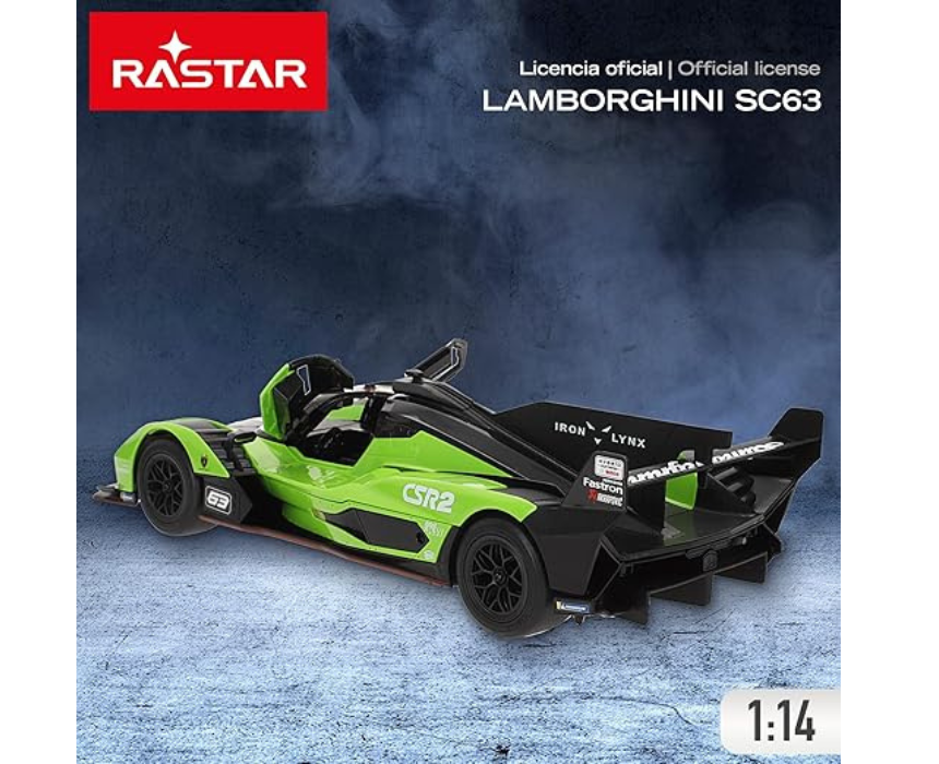 Rastar 1:14 Lamborghini SC 63 R C is a precision-engineered remote-controlled car that delivers high-speed racing action with smooth, responsive handling. Built with durable materials, it is perfect for both indoor and outdoor play, providing hours of engaging entertainment. Ideal for hobbyists and kids, it encourages coordination, focus, and interactive fun while enjoying thrilling racing experiences.