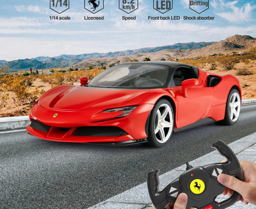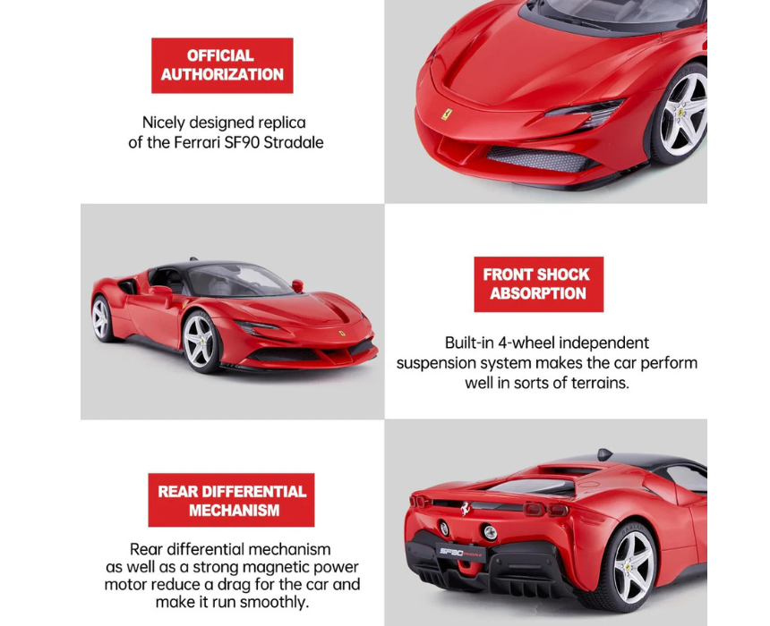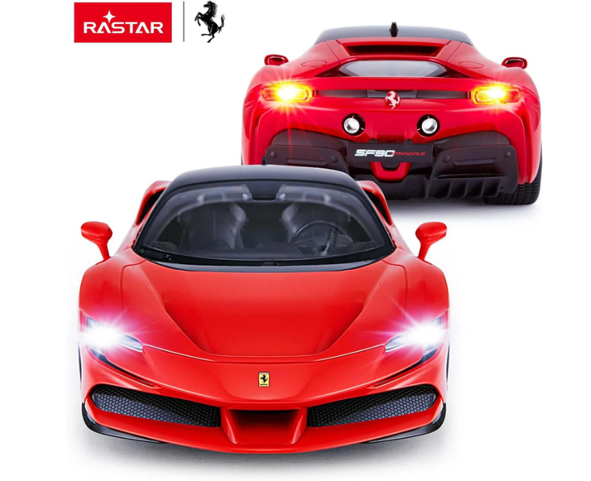 RASTAR 1 18 SF90 Ferrari R C is a high performance remote controlled sports car featuring sleek design and precise handling for an exciting driving experience. Ideal for enthusiasts and collectors, it delivers interactive play with realistic detailing and dynamic performance. Perfect for display or racing adventures, it combines fun, skill, and striking automotive craftsmanship.