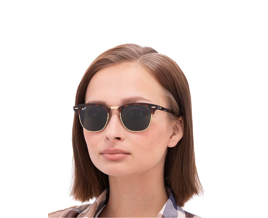 The RayBan Clubmaster RB3016 sunglasses in size 49/21 feature a modern square frame with a polished tortoise on gold finish and iconic G15 green lenses for clear vision and reduced glare. Crafted in Italy with premium materials, they combine durability, comfort, and timeless style with a contemporary edge. Ideal for everyday wear, these sunglasses pair effortlessly with casual outfits, business looks, or smart summer styling.