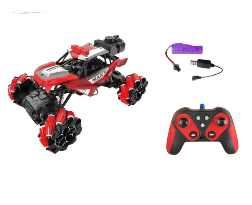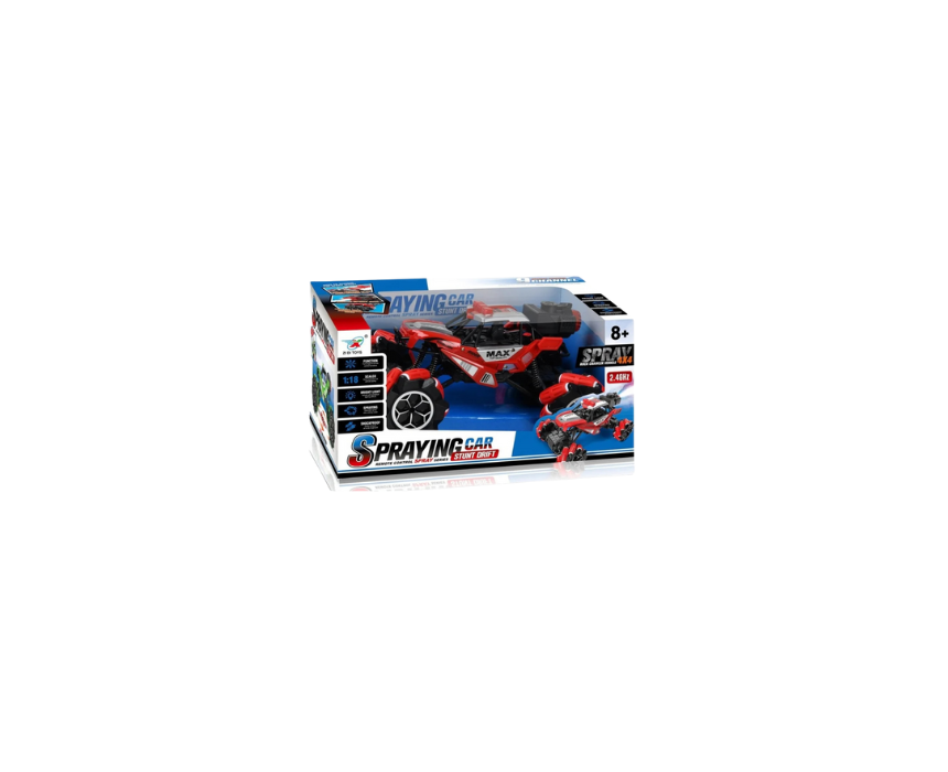 This 1:18 scale RC stunt car features 2.4GHz remote control, LED lights, drift action, stunts, and a water spray feature for thrilling play. Suitable for ages 8 and up, it can be driven using a standard remote or a gesture sensing wrist controller, and it can be styled on indoor floors, outdoor tracks, or ramps for exciting stunt adventures.