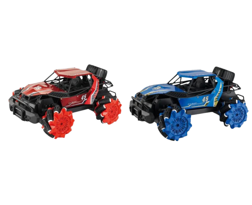 This RC stunt car delivers 4×4 off road power with omnidirectional drifting and a fun spray effect for thrilling play. Controlled with a 2.4GHz remote system, it offers smooth handling and exciting stunts, and it can be used indoors or outdoors on flat surfaces, tracks, or dirt for full adventure action.