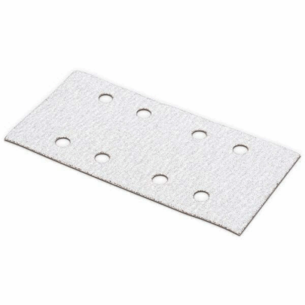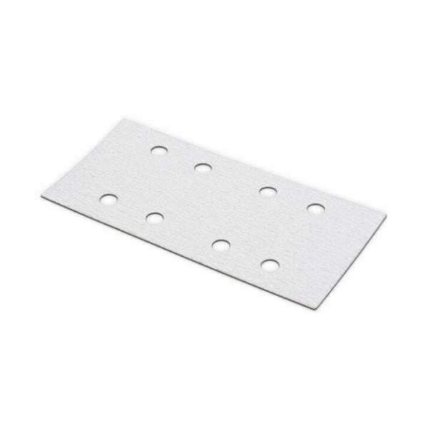 These rectangular hook and loop sanding sheets feature a P120 grit size, 90 mm width, and 185 mm length with 8 rounded perforations, making them suitable for use on wood, metal, and paint removal. Designed to fit finishing sanders, the pack of 5 provides efficient, durable sanding for smooth finishes and precise surface preparation, ideal for DIY projects or professional use.