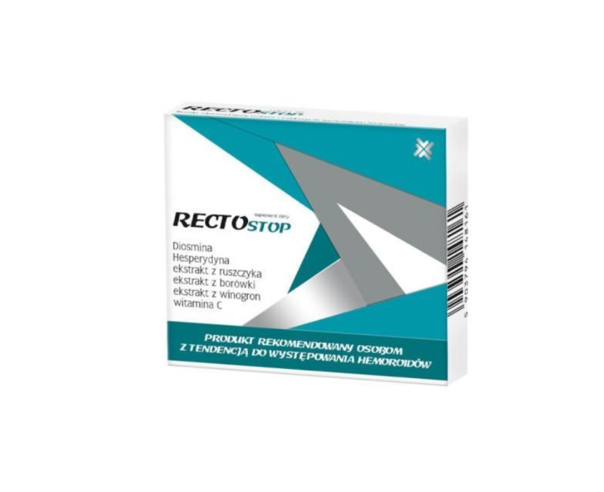 Rectostop Plus is a dietary supplement designed to support vascular health, particularly for individuals prone to varicose veins or hemorrhoids. It combines high-quality ingredients including diosmin, hesperidin, vitamin C, and plant extracts from butcher’s broom, bilberry, and grape seeds. Vitamin C contributes to collagen production for healthy blood vessels and skin, supports the nervous and immune systems, and protects cells from oxidative stress.