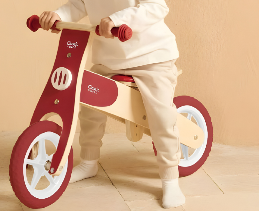 Classic World Wooden Balance Bike is suitable for ages 2 and up and is made from sturdy solid wood for safe and durable play. The handlebars are covered with rubber for better grip and the cushioned seat can be adjusted to your child’s height for comfortable riding. This bike helps children develop orientation and balance coordination while providing endless fun for indoor or outdoor play.