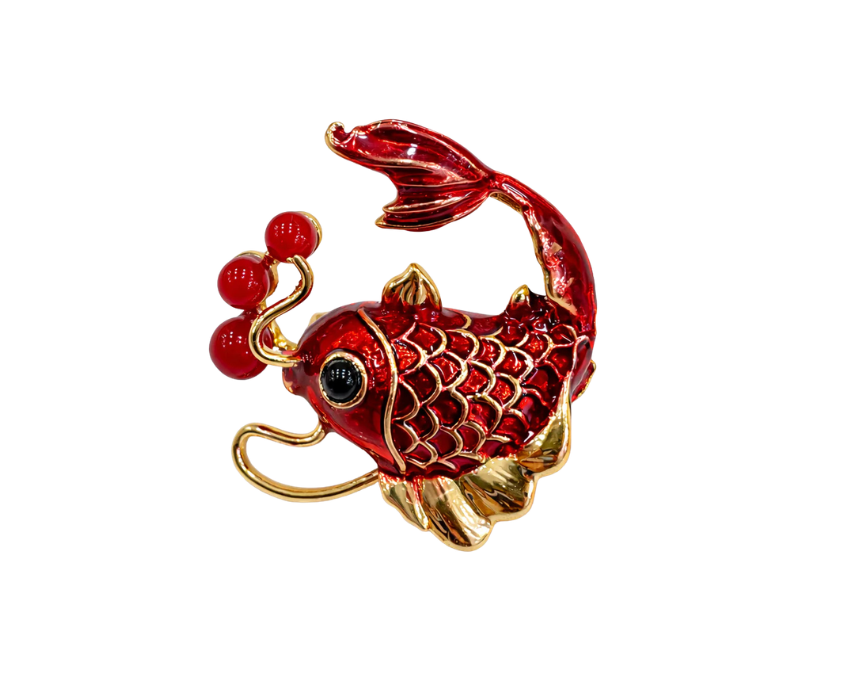 Red Enamel Koi Fish Brooch