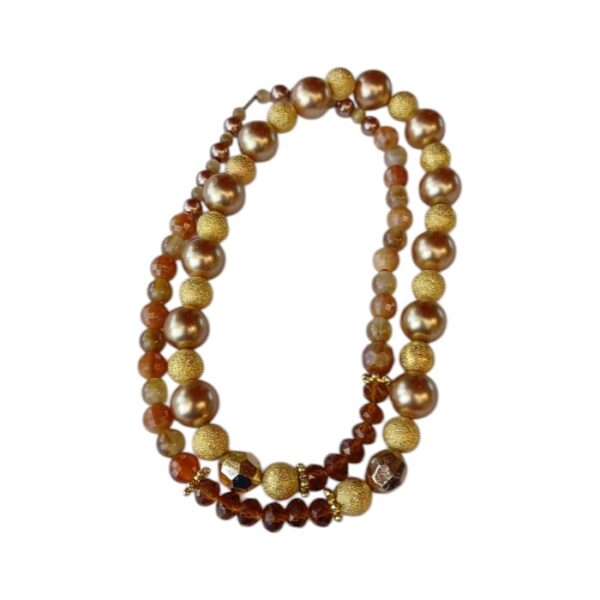 This long handmade necklace features a romantic red heart-shaped pendant as its centerpiece. It is beautifully accented with various red crystals, lustrous pearls, and golden separators that add a touch of warmth and elegance. Perfect for gifting or Valentine’s Day, this piece blends the passion of red tones with the classic beauty of pearls. The long length allows for easy layering or a dramatic standalone look. Professionally crafted for durability.