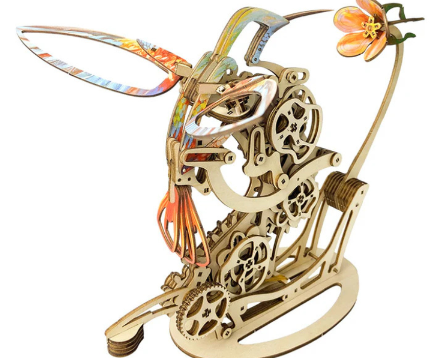 Red Hummingbird 3D Mechanical Wooden Puzzle is a precision-cut wooden model with detailed moving parts that showcase a vibrant hummingbird design through hands-on assembly. Once built, it can be styled as a striking desk or shelf display, adding natural wood texture and eye-catching mechanical motion to home or office decor.