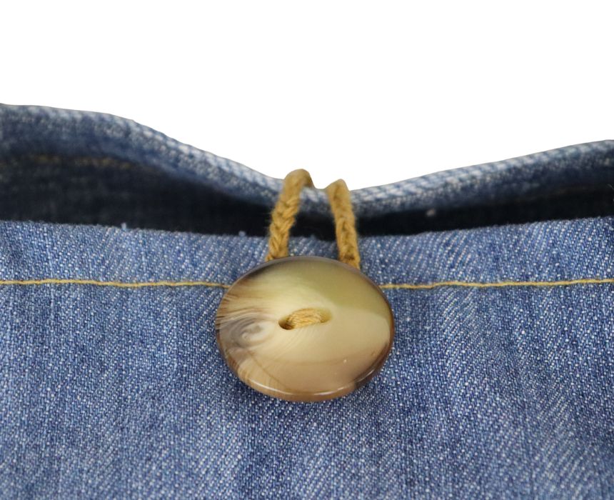 The ReJean Bag is a handcrafted rectangular bag blending light and classic blue denim, featuring two sturdy handles and a vintage button closure for a timeless look. Made from reimagined jeans, each piece is unique and sustainable. With dimensions of 28 x 12.5 x 20 cm, it’s perfect for casual outings and pairs effortlessly with denim or neutral tones for an eco-friendly, stylish statement.