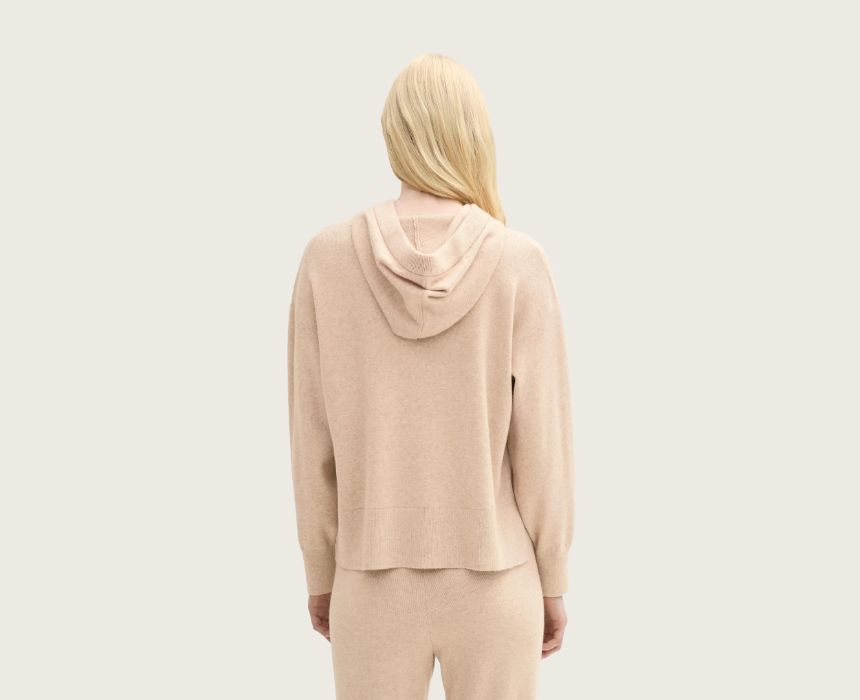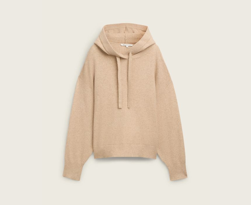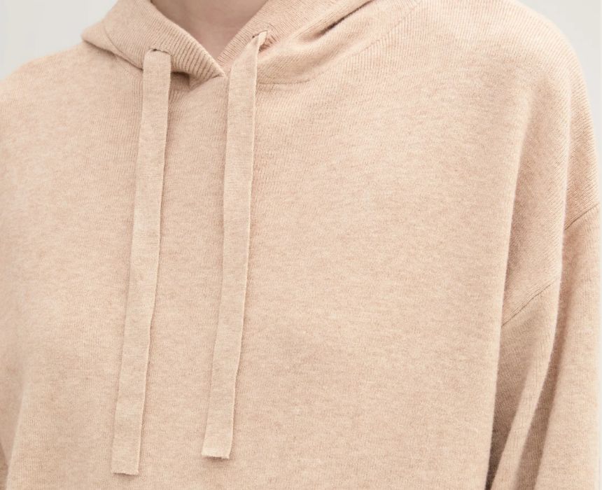 Stay cozy and stylish with the Tom Tailor Relaxed Knit Beige Hoodie. Featuring a relaxed fit and crafted from soft knitwear, this hoodie is perfect for laid-back days. The long sleeves and hood add a touch of practicality, while the beige shade makes it a versatile addition to your wardrobe.