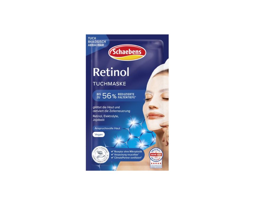 The Schaebens Retinol Sheet Mask is an anti-aging treatment that boosts skin repair by promoting cell regeneration and collagen formation. Enriched with retinol, electrolytes, and jojoba oil, it smooths fine lines, reduces imperfections, and enhances hydration for a fresh, even complexion. To use, apply the mask to cleansed skin, leave on for 15-20 minutes, then gently massage remaining serum for optimal results.