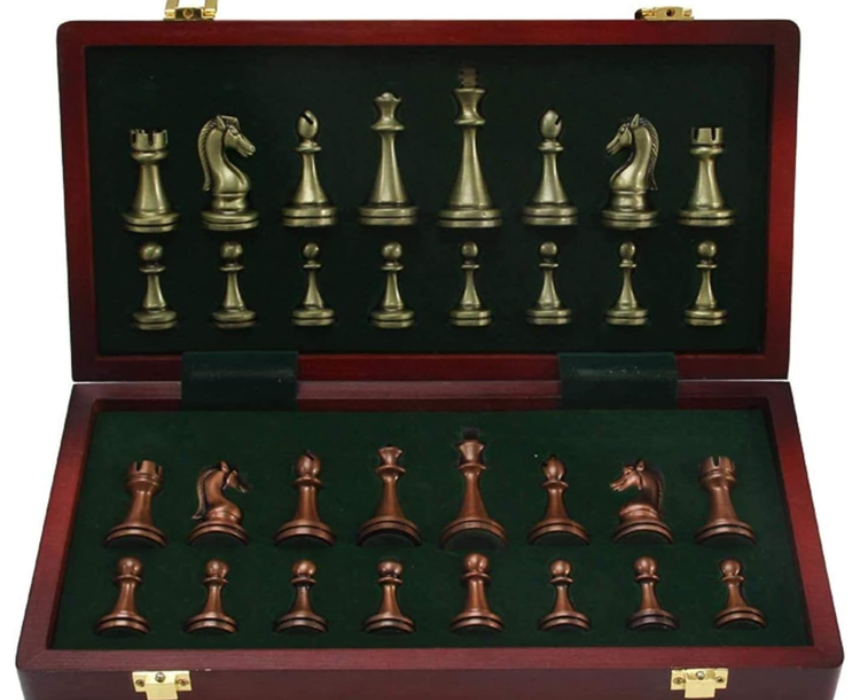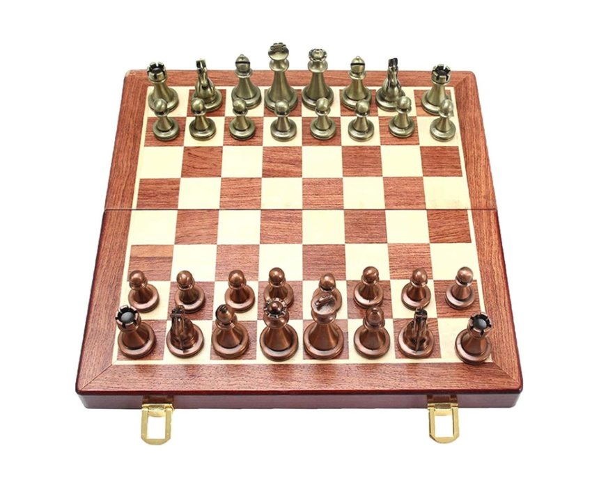 The Retro Copper Alloy Chess Set combines classic strategy with elegant design, featuring durable copper alloy pieces and a stylish board. Perfect for casual play, competitive matches, or as a decorative centerpiece, it offers a timeless chess experience for beginners and enthusiasts alike. Its compact and polished design makes it easy to display or transport for game nights anywhere.