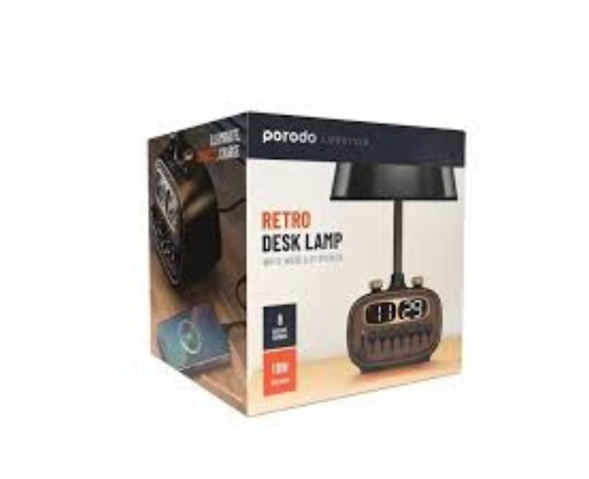 The Retro Desk Lamp with Bluetooth Speaker and USB A Charging Port 5V 2.1A Black PD RDBTSCP BKBW combines stylish lighting with functional audio and charging capabilities. Its sleek retro design fits perfectly on desks, bedside tables, or workspaces, providing ambient light, wireless music playback, and convenient device charging for a modern, multifunctional setup.