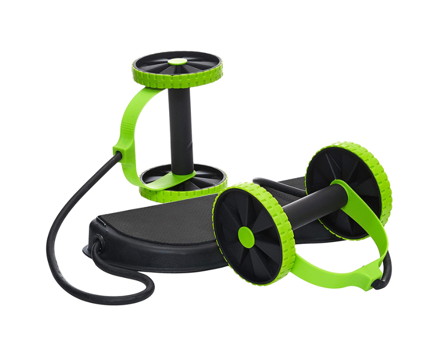 The Revoflex Xtreme Abdominal Trainer is a compact full body workout system designed to target abs, arms, shoulders, back, and legs using dual resistance bands for adjustable intensity. Lightweight and easy to use at home or while traveling, it is best used on a flat surface with comfortable workout clothing to support controlled movements and effective core training.