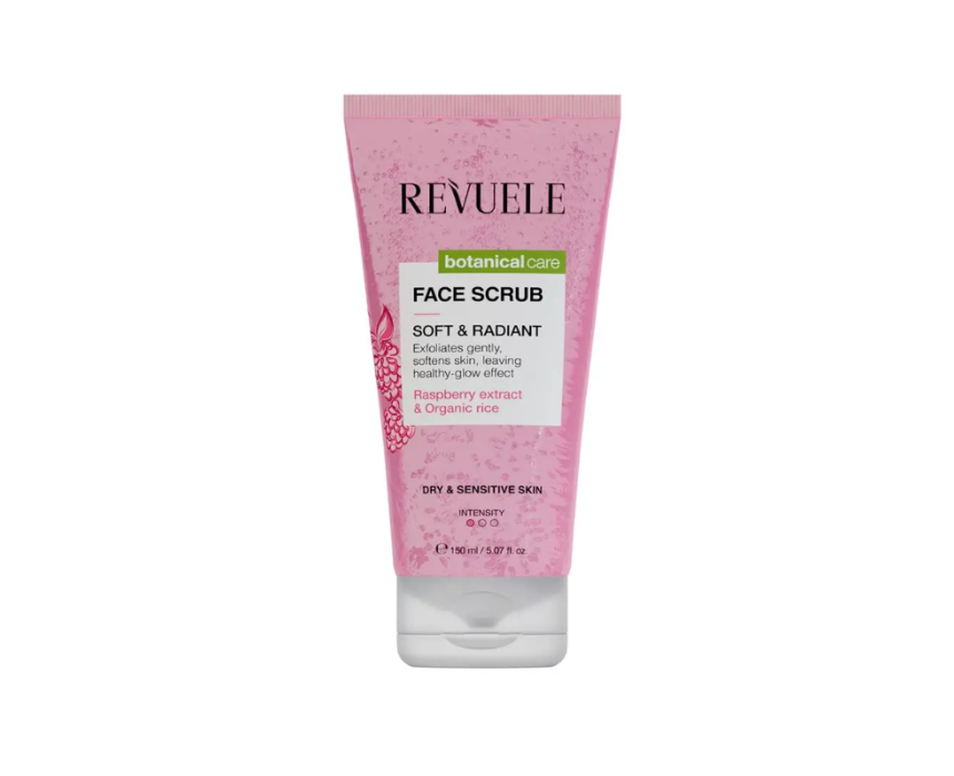 Revuele Face Scrub Soft & Radiant Raspberry is a gentle exfoliating scrub that removes dead skin cells, impurities, and excess oil while promoting a smoother, brighter complexion. Enriched with raspberry extract, it refreshes and revitalizes the skin, leaving it soft, radiant, and comfortable. Suitable for regular use, it polishes the skin gently without irritation for a healthy, glowing appearance.