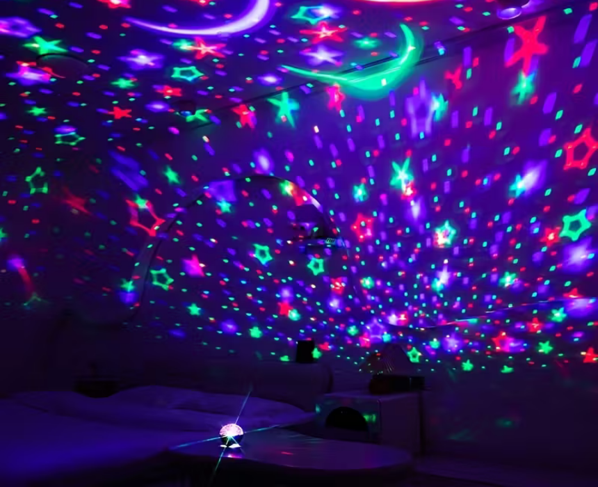 The RGB Smart Projector Lamp creates colorful star and moon projections on ceilings and walls, perfect for mood lighting, parties, or relaxation. USB-powered and compact, it’s portable and safe for home or bedroom use. Voice-controlled for smart operation, it adds a soothing and dreamy ambiance to any space.