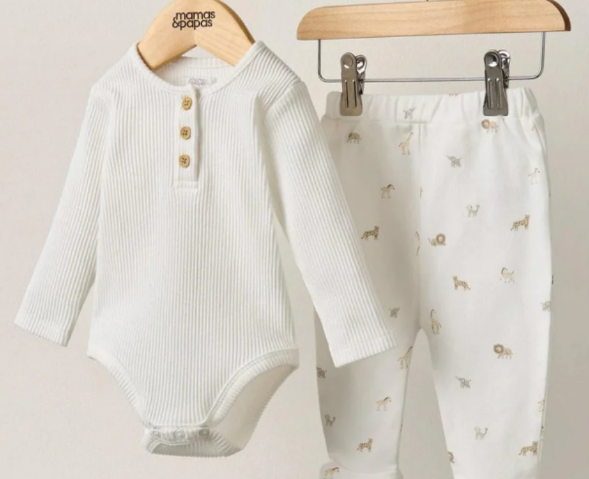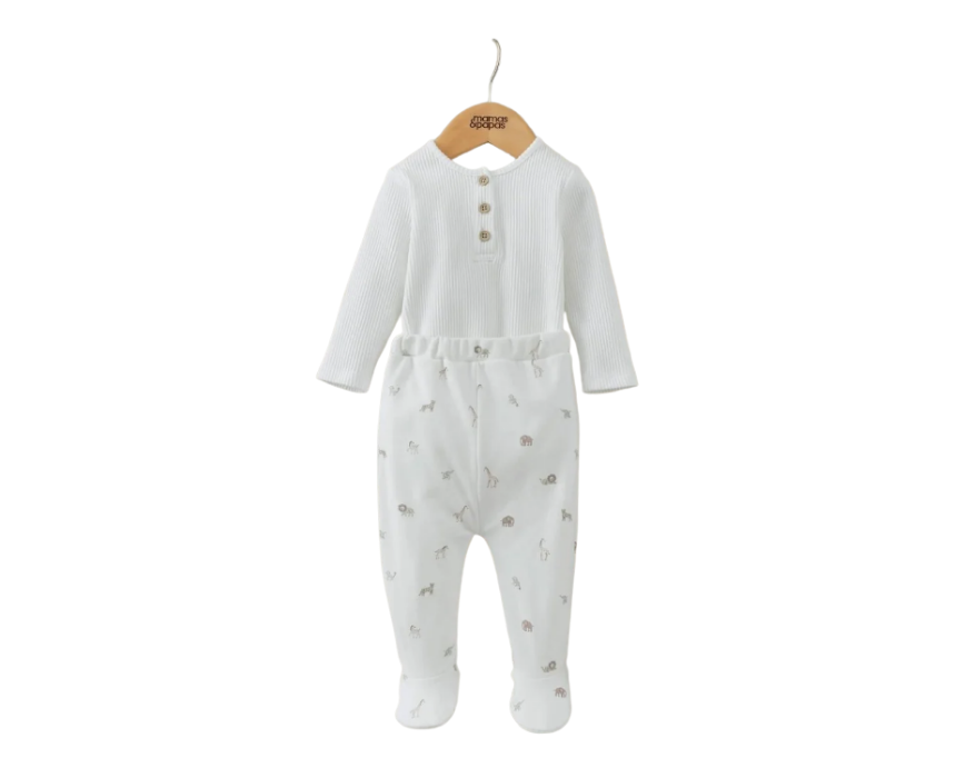 The Ribbed Bodysuit & Safari Print Pants 2-Piece Set is a stylish and practical unisex outfit for newborns and toddlers, crafted from soft, breathable cotton for comfort. Featuring a ribbed long-sleeved bodysuit with popper fastenings and coordinating safari print pants with an elasticated waistband, it ensures easy dressing and freedom of movement. Perfect for playtime or layering, this set combines cosy comfort with playful, adventurous style.
