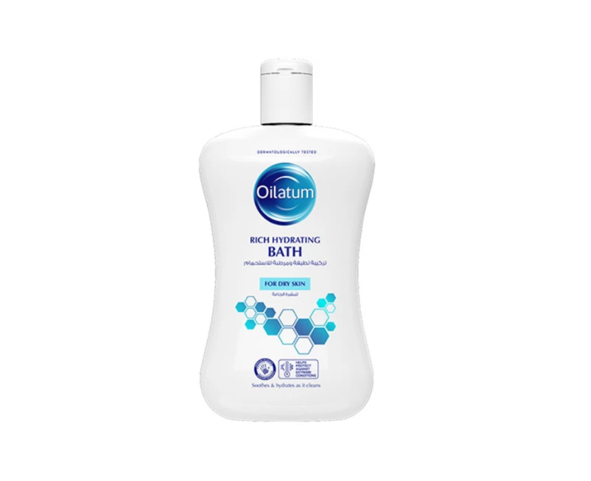 Oilatum Rich Hydrating Bath gently cleanses and nourishes dry skin on the face, body, and hands while helping maintain the skin’s natural barrier. Its emollient-rich formula reduces dehydration and protects against harsh environmental conditions, leaving skin smooth, hydrated, and comfortable. Suitable for daily use by both men and women, it provides gentle care without irritation.