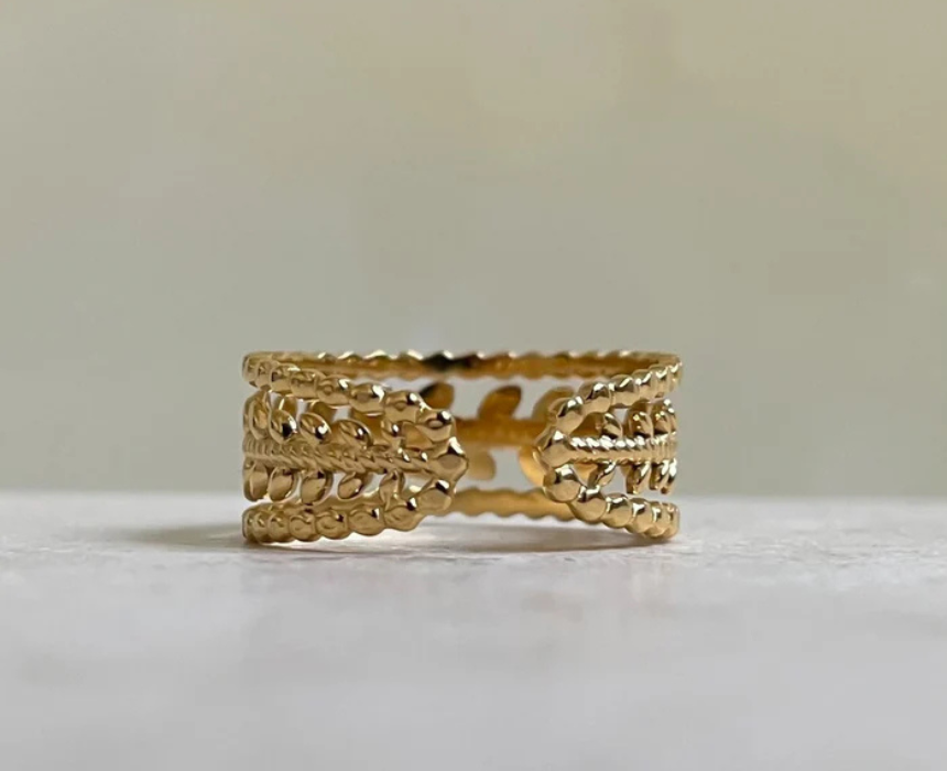 This adjustable ring features a graceful leaf inspired design with a refined, elegant touch that complements any style. Crafted for a comfortable fit, it can be easily adjusted and worn alone as a delicate statement or stacked with other rings for a layered look. Lightweight and versatile, it suits both everyday wear and special occasions.