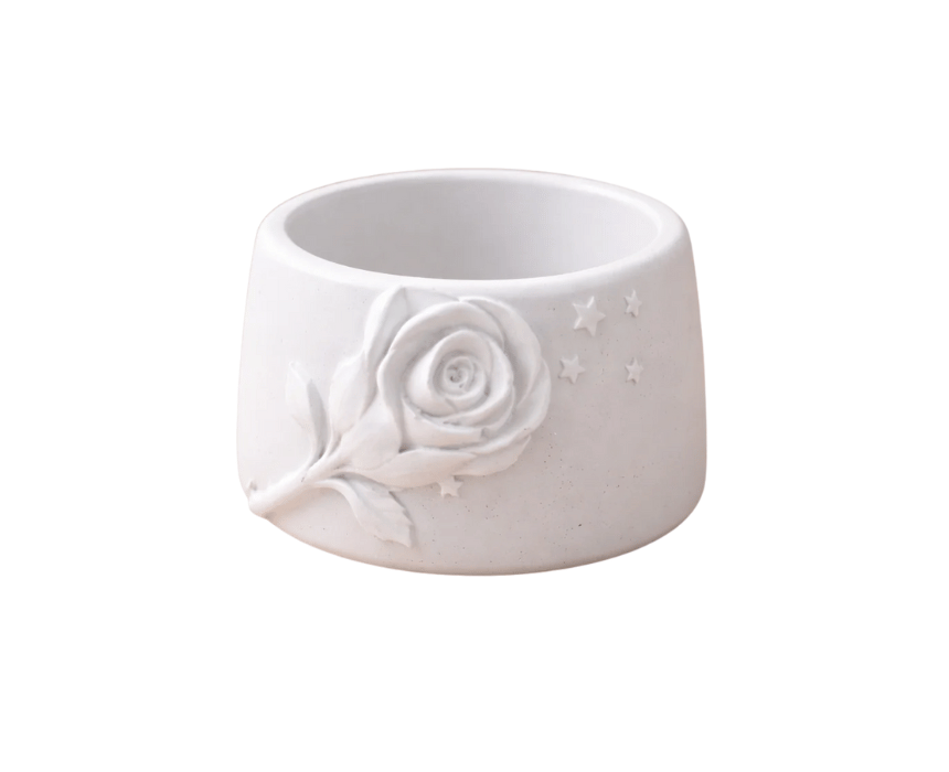 The Rose Whisper Pot is a delicate, minimalist planter with a soft rose-inspired design. Perfect for small plants, succulents, or decorative accents, it adds a subtle touch of elegance to shelves, desks, or coffee tables.