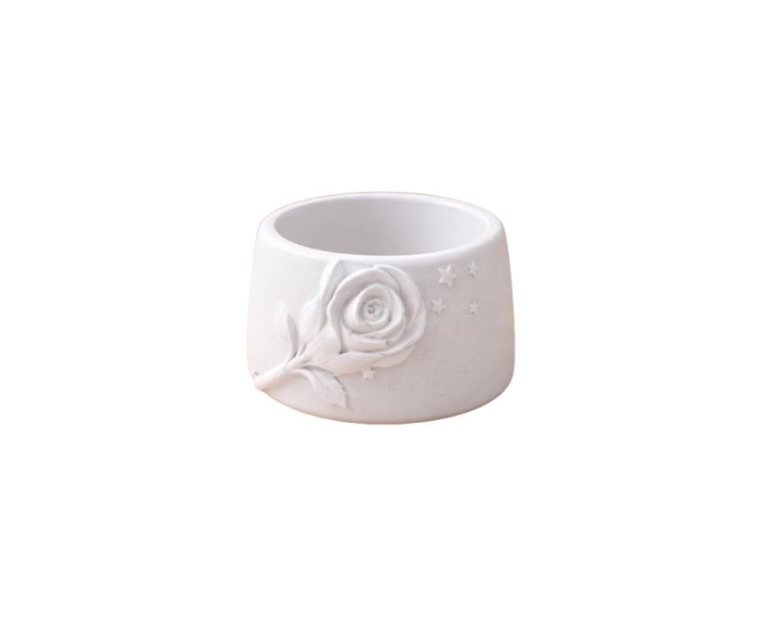This floral-inspired pot features a softly sculpted rose bloom with delicate star accents, creating a romantic yet minimal decorative piece. Ideal for small plants, candles, brushes, or light styling, it adds gentle charm to shelves, desks, and bedside spaces. Its rounded form blends effortlessly into modern, floral, and gift-ready décor.