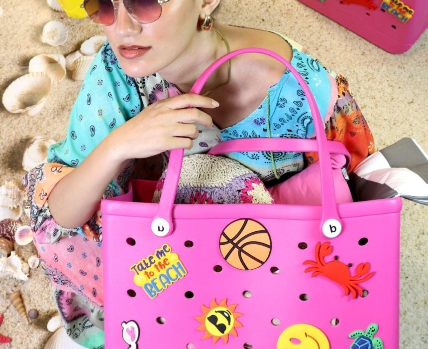 The Rubbery Flex Bag in Fushia adds a bright and lively touch to any beach day for kids and adults alike. Available in medium (38x13x32 cm) and large (48x24x36 cm) sizes, this flexible and durable bag easily carries all your beach essentials. Style it with vibrant swimwear or casual summer outfits for a fun and energetic look.