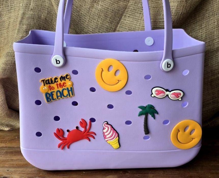 The Rubbery Flex Bag in Light Purple is a stylish and practical choice for beach outings with kids or adults. Available in medium (38x13x32 cm) and large (48x24x36 cm) sizes, it’s lightweight, easy to clean, and spacious enough for all your summer essentials. Pair it with colorful swimwear or a breezy dress for a fresh, fun beach look.