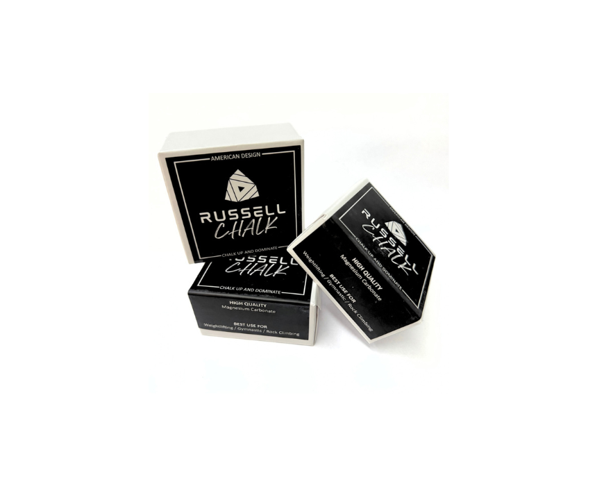 Russell Chalk is ideal for lifting weights, climbing, or doing pull-ups, providing a superior grip on bars, rock faces, dumbbells, or rings. Versatile and mess-free, it can be crushed into powder, broken into chunks, or pinched off as needed. Essential for reducing friction, preventing blisters and calluses, and keeping hands dry and focused.