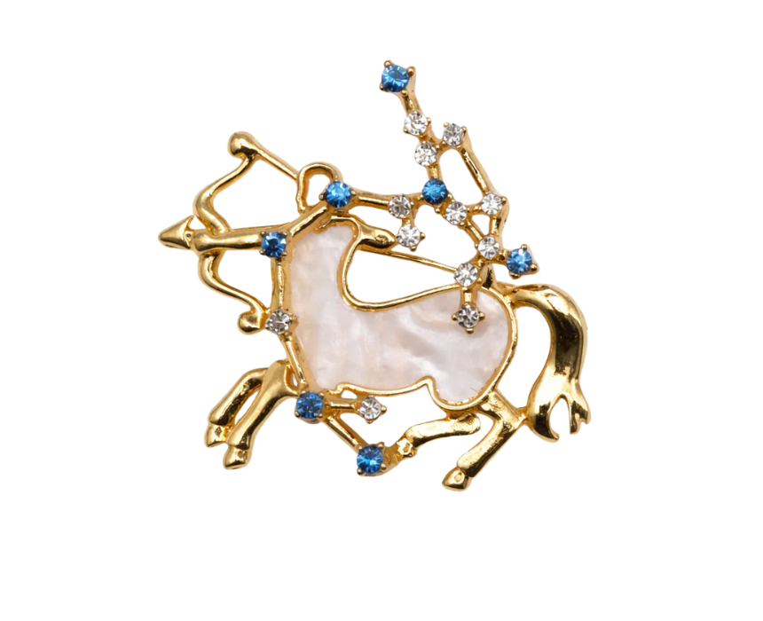 Sagittarius Zodiac Brooch Gold Archer Horoscope Pin With Mother Of Pearl
