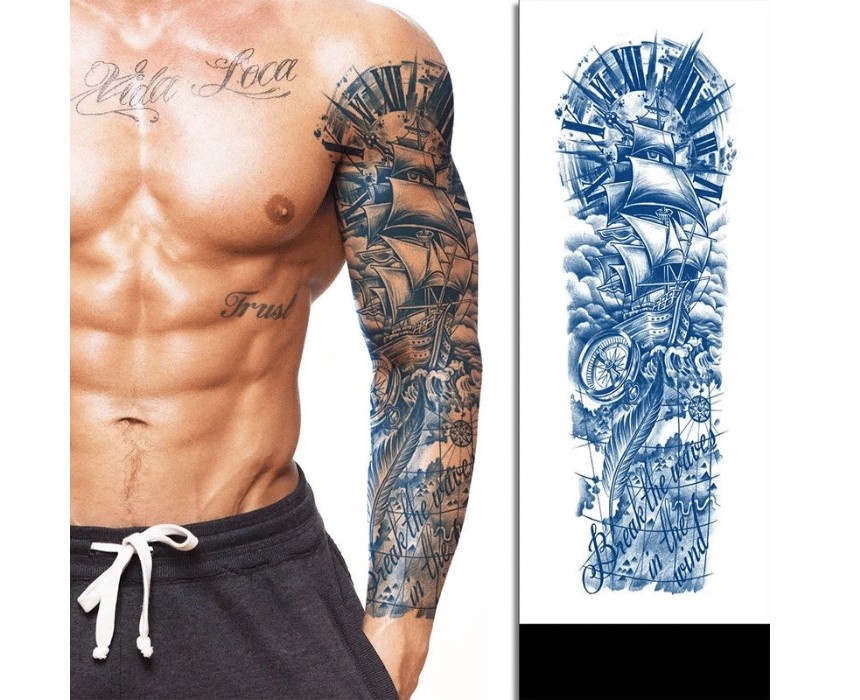 Sailing Ship Arm Sleeve Jagua Tattoo