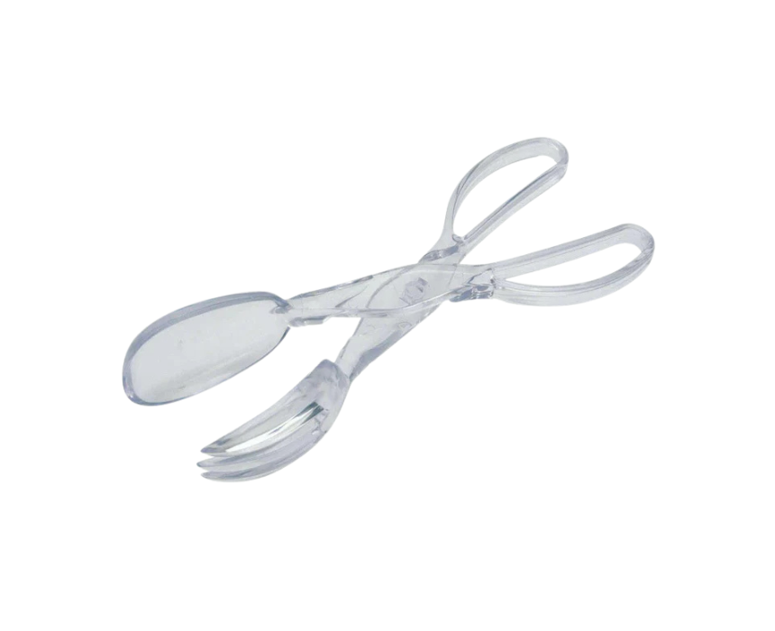 These acrylic scissor-action salad servers make tossing and serving salads effortless, allowing one-handed use while still functioning as traditional servers when separated. Made from durable clear acrylic, they are perfect for buffets, picnics, or barbecues, easy to clean by hand, and designed to simplify serving for both everyday meals and entertaining guests.