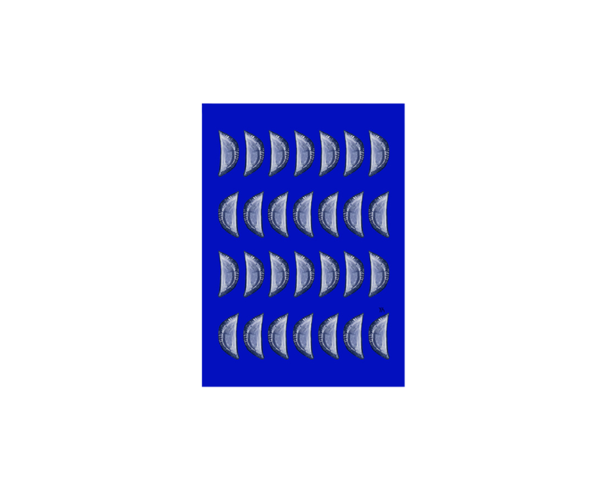 Sambousek Pattern Cobalt is a vibrant print on A5 paper measuring approximately 15×21 cm, featuring intricate cobalt blue designs inspired by traditional patterns. Perfect for adding a pop of color to any room, it can be displayed alone or as part of a curated gallery wall to enhance modern or classic interiors.