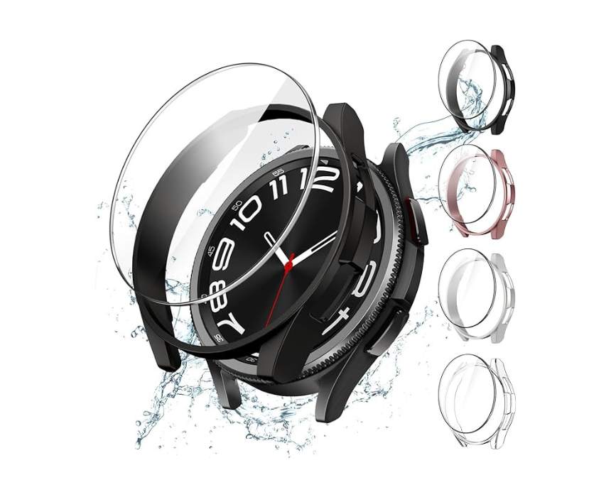 A protective case with screen protector designed for Samsung Galaxy Watch Six Classic forty three millimeter to guard against scratches and daily wear. It ensures a secure fit with clear visibility and smooth touch response for reliable everyday protection.