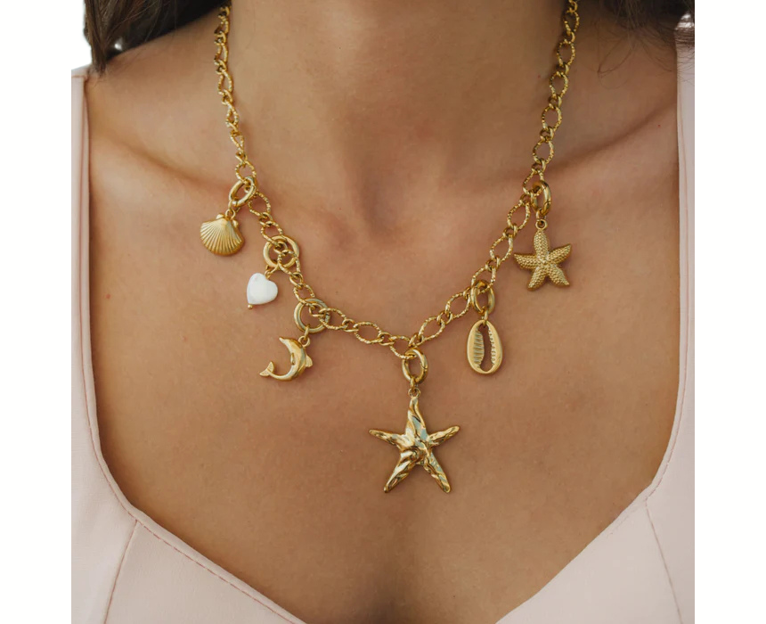 The Sandy Soul Necklace Set includes one necklace and six interchangeable charms, offering a versatile accessory for everyday styling. Designed for easy customization, it allows the wearer to mix and match charms to create looks that range from relaxed to refined. Perfect for layering or wearing solo, it adds a personalized touch to any outfit.