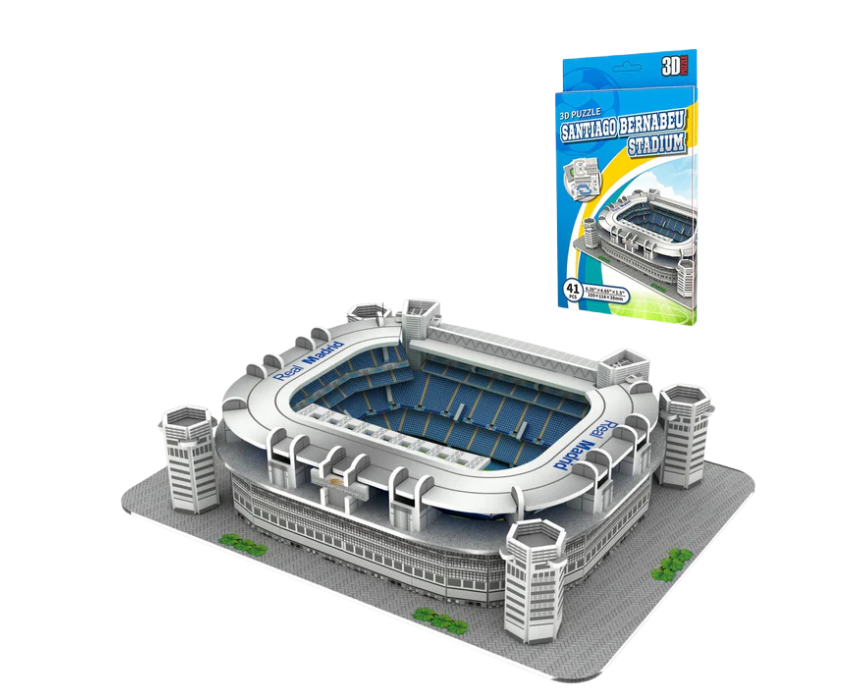The Santiago Bernabeu Real Madrid Stadium 3D Puzzle Small is a compact model that captures the iconic football stadium with detailed architecture in a fun and educational build. Once assembled, it can be styled as a decorative piece on desks, shelves, or display areas, perfect for football fans and collectors. Its small size makes it ideal for gifting, showcasing team pride, or adding a sporty touch to any space.