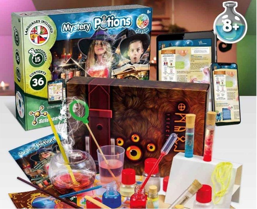 Enter a world of fantasy and science with the Science 4U Mystery Potion kit! Learn to create bubbling, glowing potions alongside magical creatures like fairies, witches, goblins, and dragons. Explore the Magic Village, guided by Master Smarty, the wisest wizard in town. This enchanting kit includes a magic wand, a cauldron, and everything needed to mix your own mystical creations. A magical way for kids to dive into science and unleash their imagination! Designed for kids aged 8+