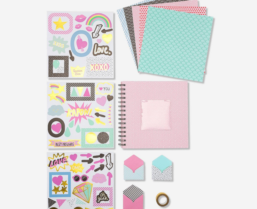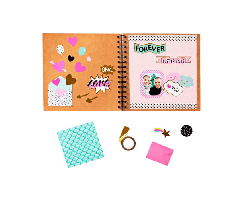 The Scrapbook Kit is a complete creative set designed to help capture and preserve cherished memories. It includes a 22 x 22 cm scrapbook, stickers, decorative tape, and small envelopes, offering endless possibilities for personalization. Compact and versatile, it’s perfect for beginners or experienced scrapbookers, making it ideal for documenting special events, holidays, or everyday moments while adding a stylish and functional touch to any keepsake.