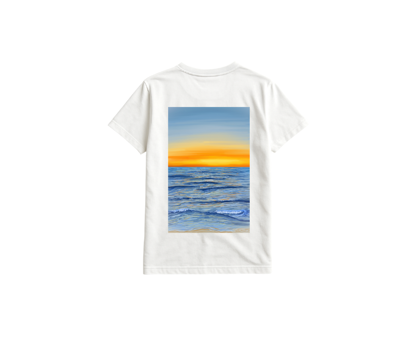 Wear the tranquil beauty of a Mediterranean sunset with this stunning seascape original and hand-painted design. Printed on premium, soft cotton fabric for unbeatable comfort, this tee is perfect for beach lovers and sunset admirers.
