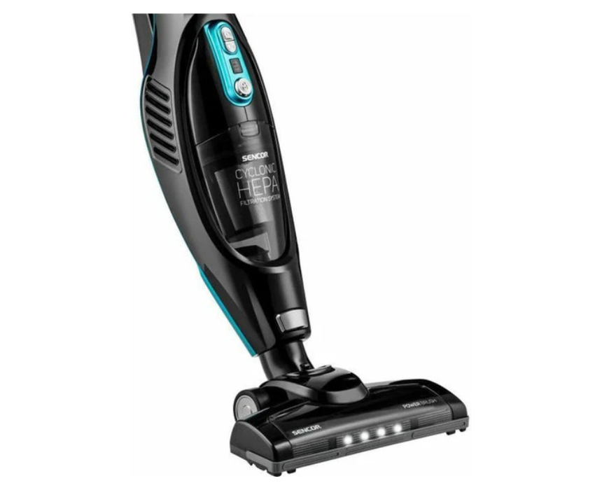 The Sencor 2 in 1 Cordless Stick Vacuum 22.2V offers up to 45 minutes of runtime and features a HEPA filter for efficient dust and allergen removal. Its versatile design converts from stick to handheld, making it ideal for floors, furniture, and hard-to-reach areas. Finished in vibrant turquoise, it combines modern style with lightweight, convenient cleaning for any home.