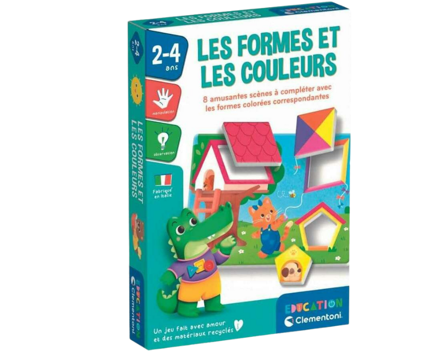 This colorful Shapes & Colors Game helps children aged 2–4 recognize geometric shapes and the four main colors through fun and interactive play. It includes 4 boards and 16 colored pieces with 3 game modes, plus a free play mode to encourage creativity and imagination. Designed and developed in Italy, it provides a safe, engaging way for toddlers to learn while having fun.