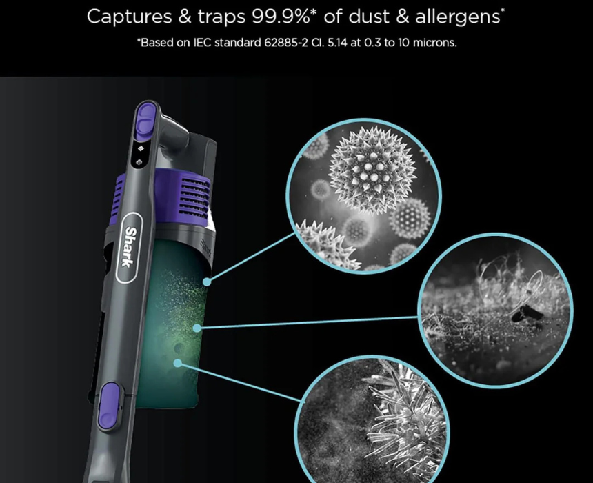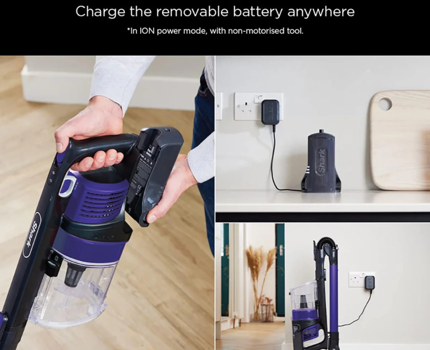 The Shark IZ202UKT stick vacuum offers 40 minutes of runtime, 25.2V power, and anti-hair wrap technology for efficient cleaning on carpets, hard floors, and pet hair. Its lightweight, cordless design allows easy maneuvering and convenient storage. Style it by keeping it charged and accessible for daily cleaning or mounting it on the wall for a sleek, modern look.