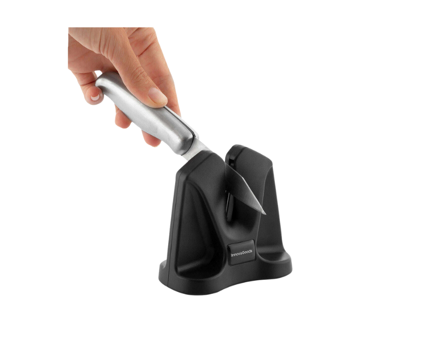 The InnovaGoods Knife Sharpener Pro V Sharvy features a V-shaped design for sharpening and polishing all types of knives, including smooth, serrated, and Japanese blades. Its coarse or fine sharpening angle allows professional results in just a few strokes, while the non-slip silicone base ensures safe and stable use. Compact, lightweight, and easy to handle, this manual sharpener extends the life of your knives with precision and convenience.
