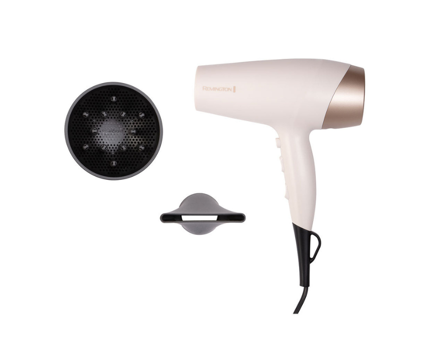 The Shea Soft Hairdryer delivers sleek, naturally soft hair with Micro-Conditioners enriched with Shea Oil for smooth, frizz-free results. Featuring Ionic technology, a powerful 2200W DC motor, 3 heat and 2 speed settings, a diffuser, and a wide concentrator, it dries hair quickly while enhancing curls or creating straight styles. Its cool shot, hang-up loop, and removable grille add convenience for everyday styling.