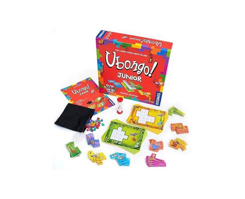 Ubongo! Junior is a fast-paced, geometric puzzle game where players race against the clock and each other to solve puzzles using colorful animal-shaped tiles. Perfect for kids aged 5 and up, players must complete their puzzle before time runs out, shouting “Ubongo!” when they finish and collecting gems. The game is fun, quick, and can be played solo or with up to 4 players, making it a great choice for family gatherings or game nights. With 72 gems, 4 sets of animal tiles, and 50 puzzle boards, Ubongo! Junior offers engaging gameplay for players of all skill levels Designed for kids 5.